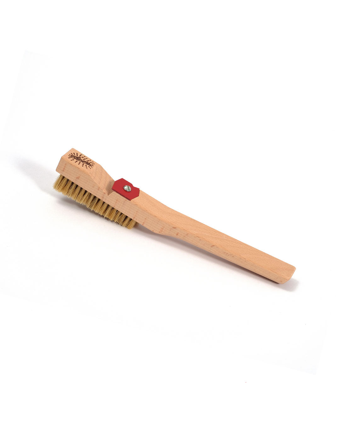 On top of the brush is a metal logo bottle opener with an cheers branding lettering on top of the brush. That will remind you that you really earned your cold one after you cleaned all your holds carefully to leave the spot just like you found it.
